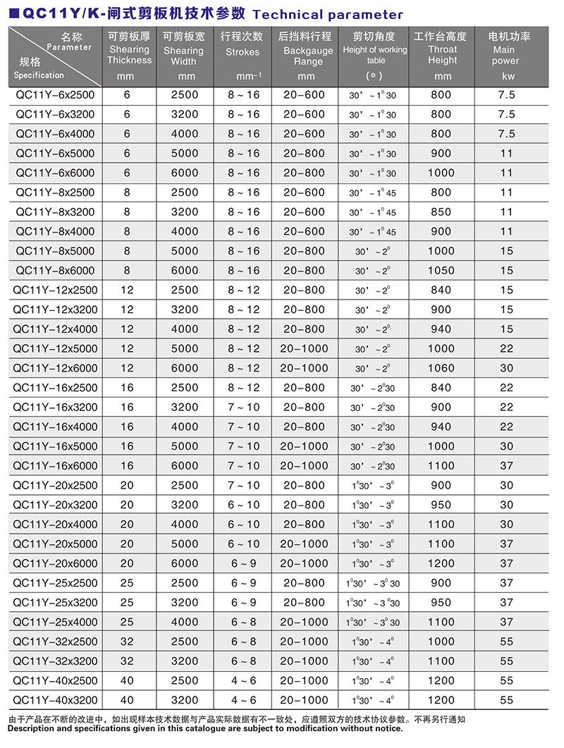 | QC11Y/K系列數控/普通液壓閘式剪板機 |